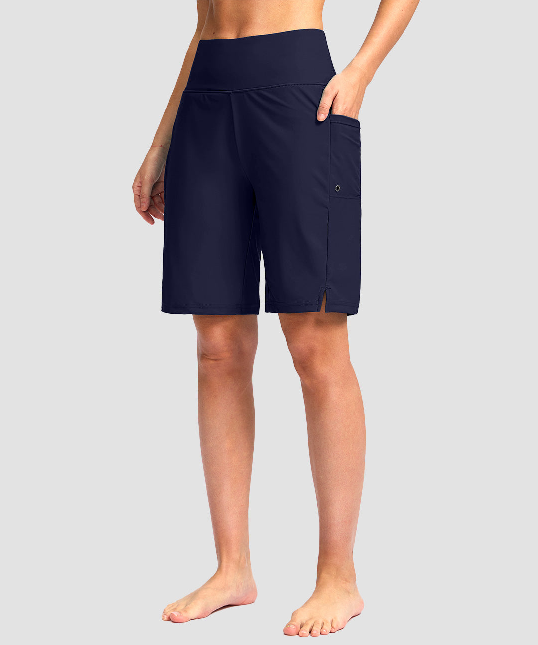 Made for summer rhythms, knee-length swim shorts dry fast and feel airy, with stretch, secure liner, high waist comfort, draining pockets from shore to water.